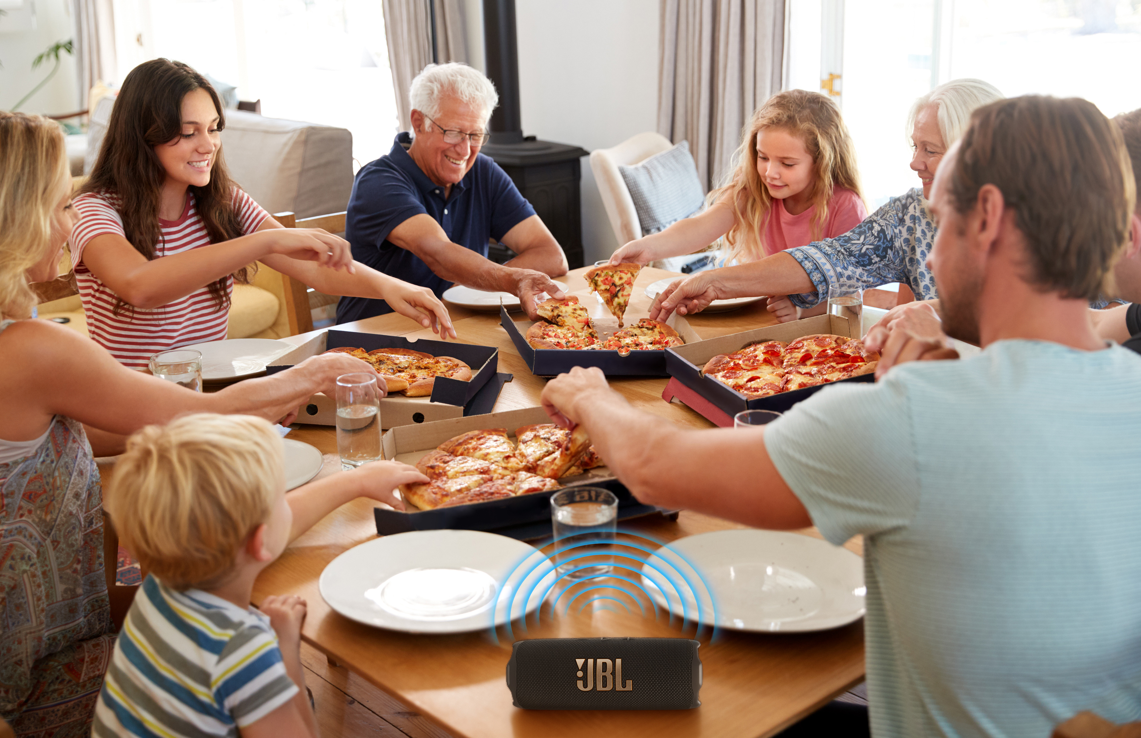 Insight: Many people use speakers to listen to music while cooking or eating dinner.